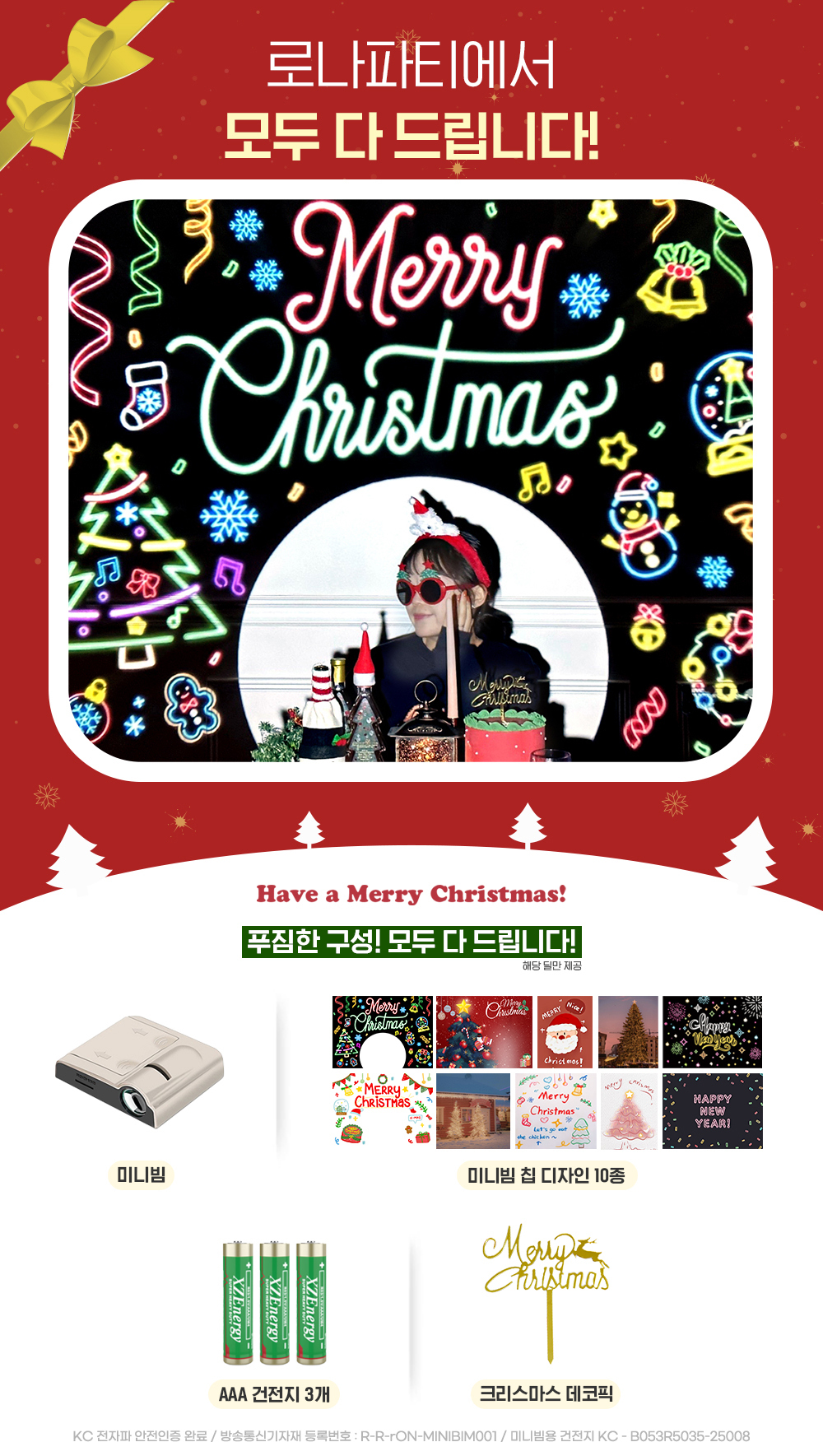 | KC 안전 인증 | [생활용품] 안전확인 대상 품목으로 아래의 국가 통합인증 필함.인증번호 : B053R5035-25008(해당 인증 검사 정보는 판매자가 직접 등록한 것으로 등록 정보에 대한 책임은 판매자에게 있습니다.) [방송통신기자재] 적합등록 대상 품목으로 아래의 국가 통합인증 필함.인증번호 : R-R-rON-MINIBIM001인증일자 : 2022-10-24(해당 인증 검사 정보는 판매자가 직접 등록한 것으로 등록 정보에 대한 책임은 판매자에게 있습니다.) |