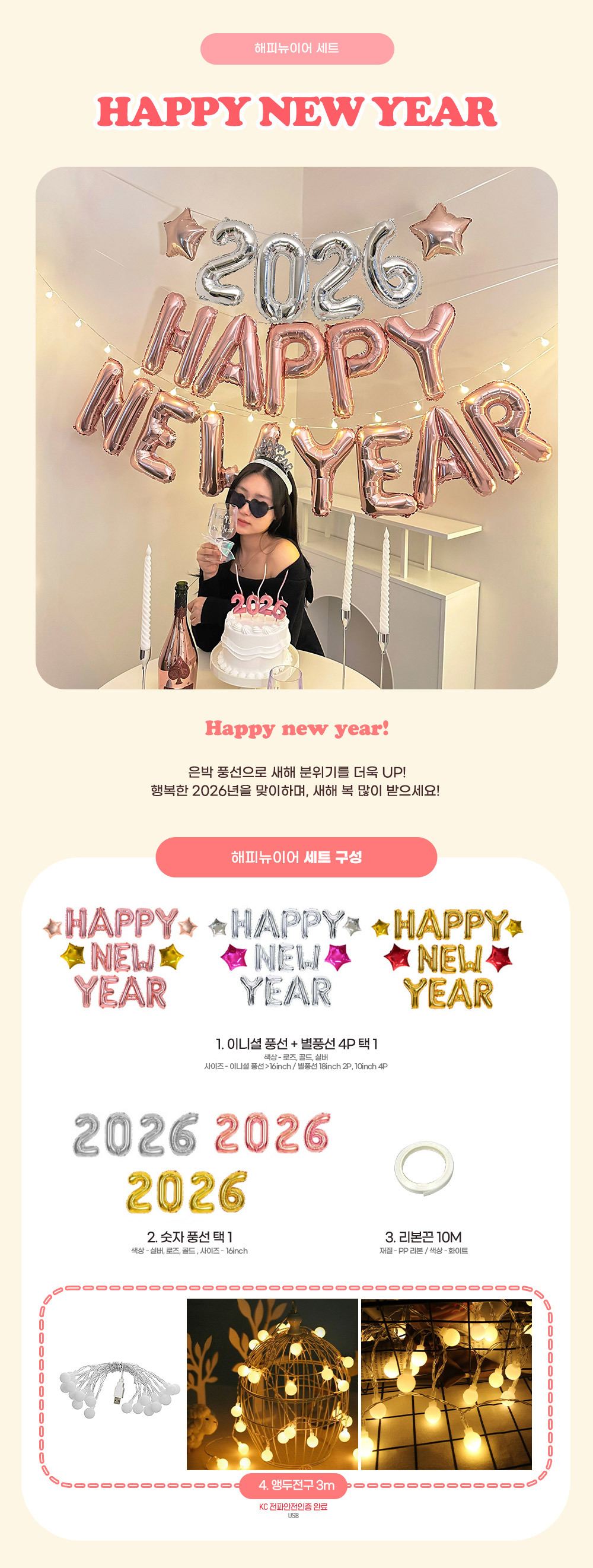 신년 연말 홈 파티 풍선 세트 숫자 로즈 해피뉴이어